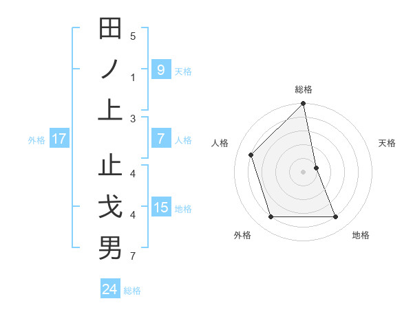 田ノ上 止戈男さんの総格は24画の5点!