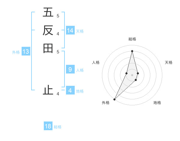 五反田 止さんの外格は13画の5点!