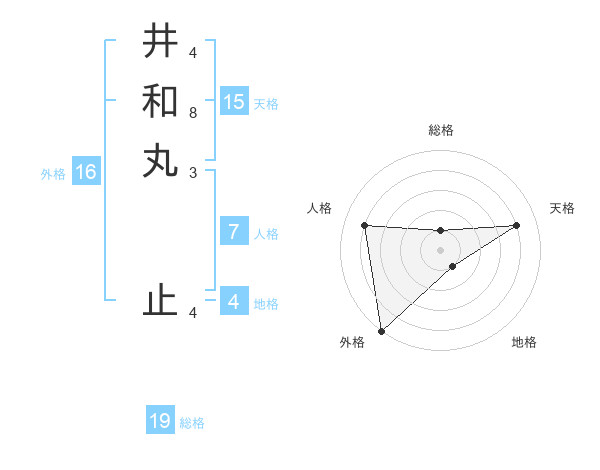 井和丸 止さんの外格は16画の5点!