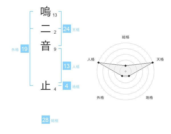 嗚二音 止さんを姓名の画数から五運を鑑定