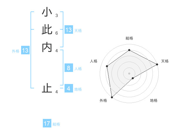 小此内 止さんの総格は17画の4点!