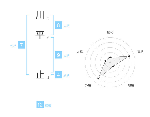 川平 止さんの総格は12画の1点!