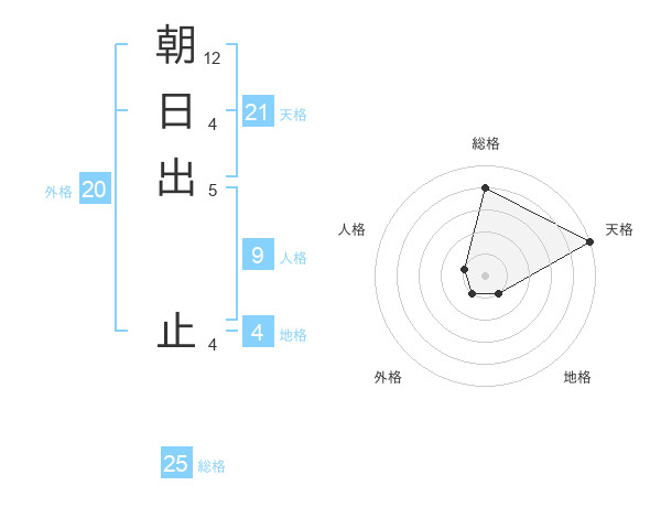 朝日出 止さんの総格は25画の4点!