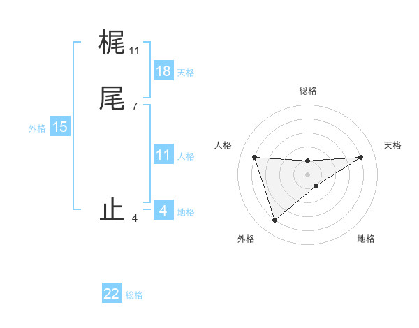 梶尾 止さんの総格は22画の1点!