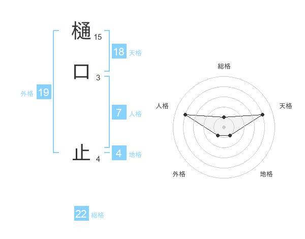 樋口 止さんの総格は22画の1点