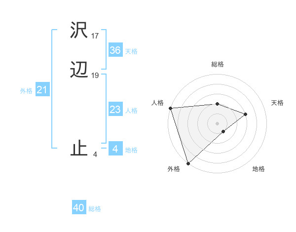 沢辺 止さんの外格は21画の5点!