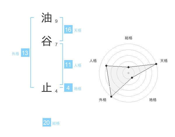 油谷 止さんの外格は13画の5点!