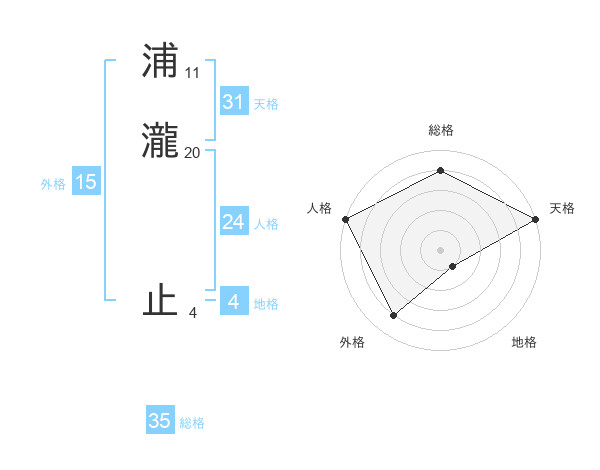 浦瀧 止さんを姓名の画数から五運を鑑定