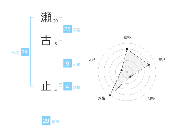 瀬古 止さんの外格は24画の5点!