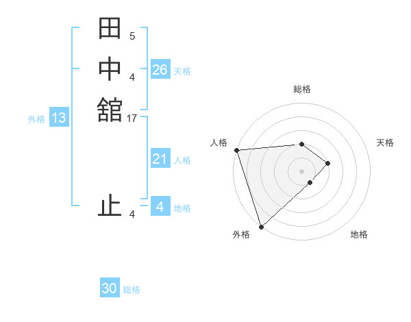 田中舘 止さんの外格は13画の5点!