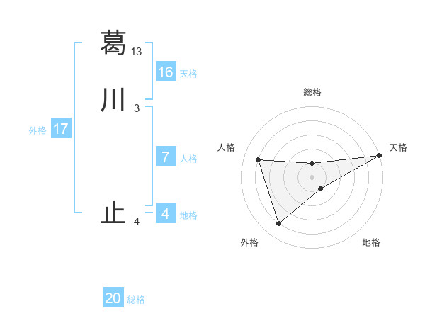 葛川 止さんの天格は16画の5点!