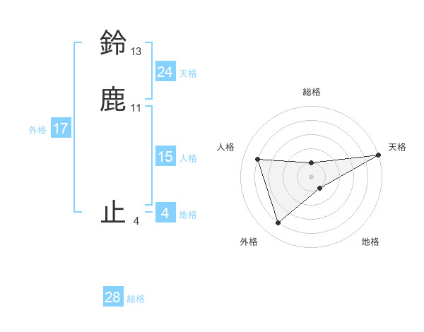 鈴鹿 止さんの天格は24画の5点!