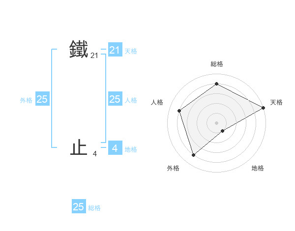 鐵 止さんの総格は25画の4点!