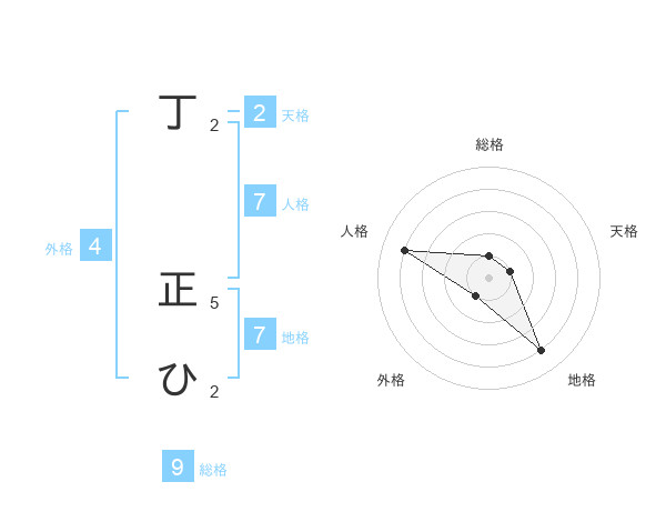 丁 正ひさんの地格は7画の4点!