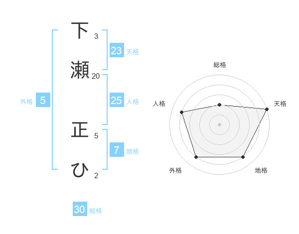 下瀬 正ひさんの天格は23画の5点!