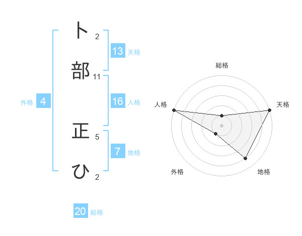 卜部 正ひさんを姓名の画数から五運を鑑定