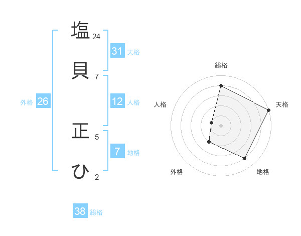 塩貝 正ひさんの地格は7画の4点!