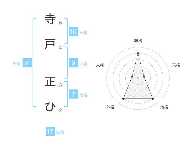 寺戸 正ひさんを姓名の画数から五運を鑑定