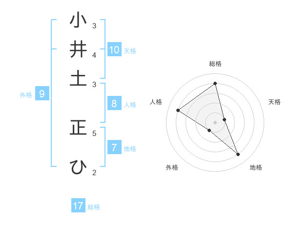 小井土 正ひさんの総格は17画の4点!