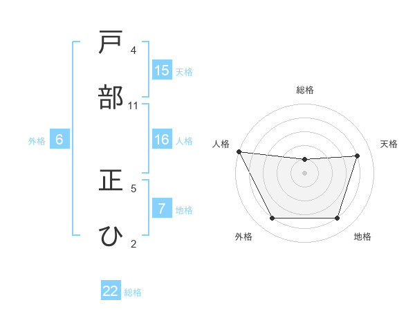 戸部 正ひさんの総格は22画の1点!