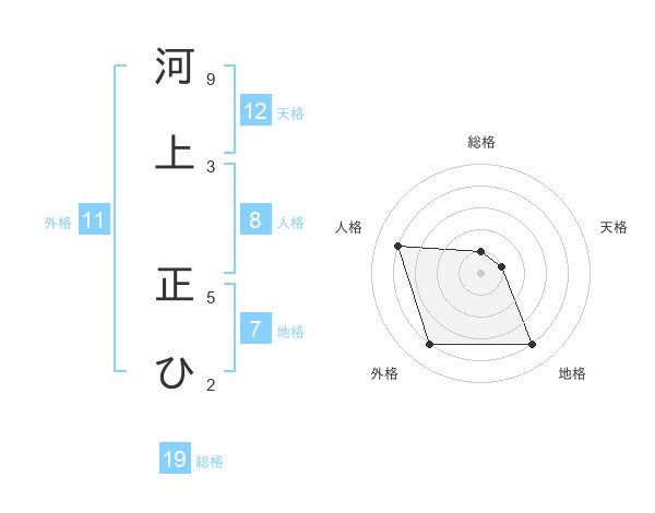 河上 正ひさんの天格は12画の1点!