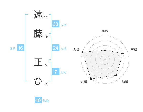 遠藤 正ひさんの天格は33画の4点!