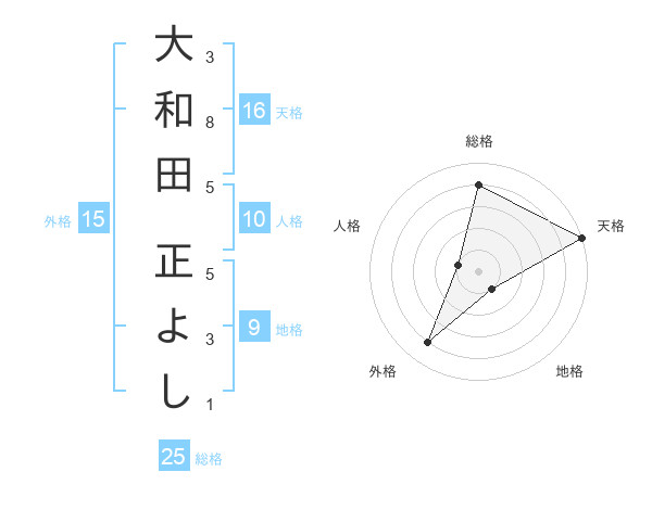 大和田 正よしさんを姓名の画数から五運を鑑定