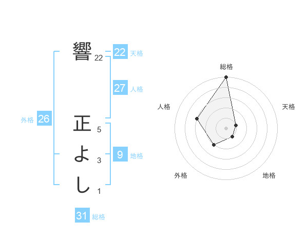 響 正よしさんの総格は31画の5点!