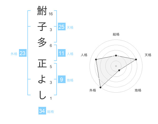 鮒子多 正よしさんの天格は25画の4点!