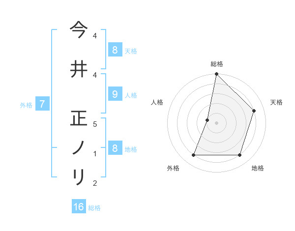 今井 正ノリさんの総格は16画の5点