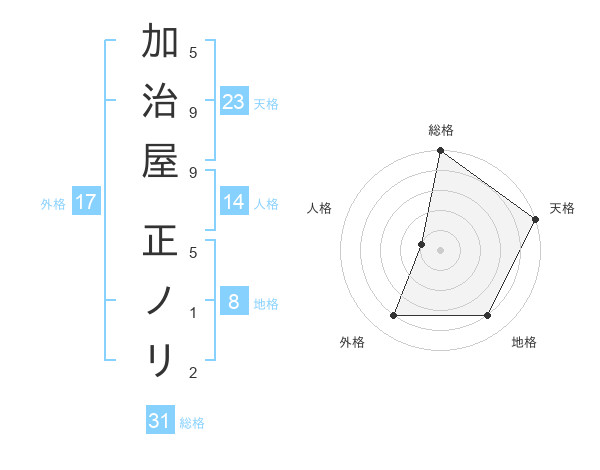加治屋 正ノリさんを姓名の画数から五運を鑑定