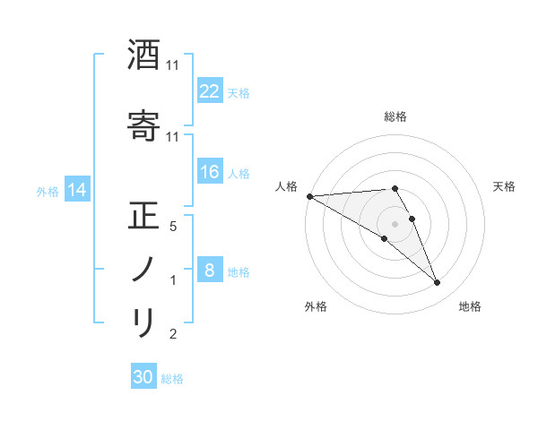 酒寄 正ノリさんの天格は22画の1点!