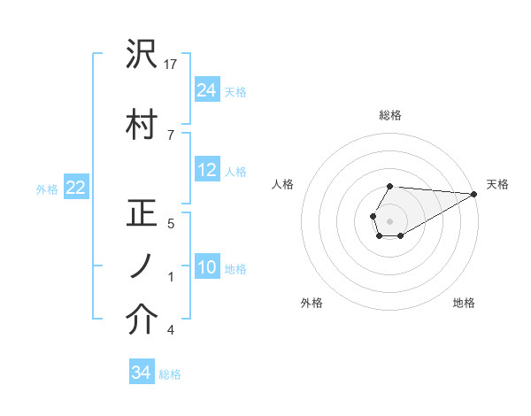 沢村 正ノ介さんの天格は24画の5点!