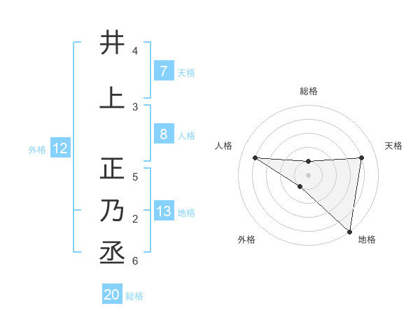 井上 正乃丞さんの総格は20画の1点!