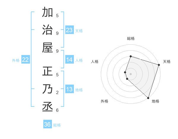 加治屋 正乃丞さんを姓名の画数から五運を鑑定