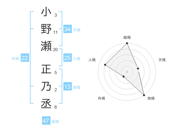 小野瀬 正乃丞さんを姓名の画数から五運を鑑定
