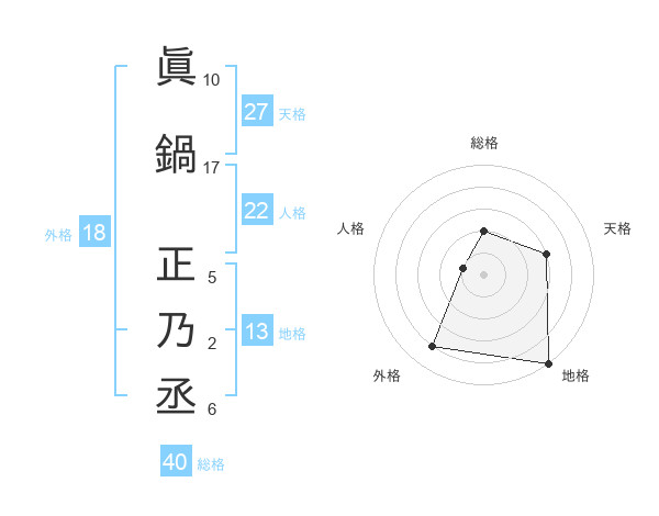 眞鍋 正乃丞さんを姓名の画数から五運を鑑定