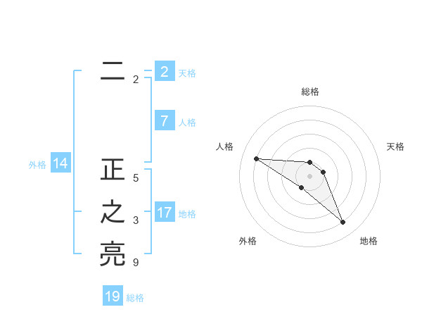 二 正之亮さんの外格は14画の1点!