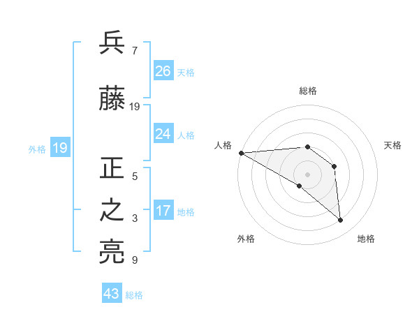 兵藤 正之亮さんを姓名の画数から五運を鑑定