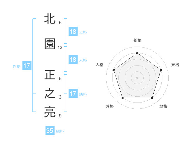 北園 正之亮さんを姓名の画数から五運を鑑定