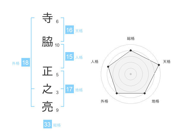 寺脇 正之亮さんの総格は33画の4点!
