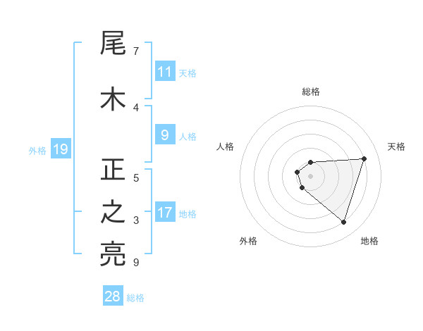 尾木 正之亮さんを姓名の画数から五運を鑑定