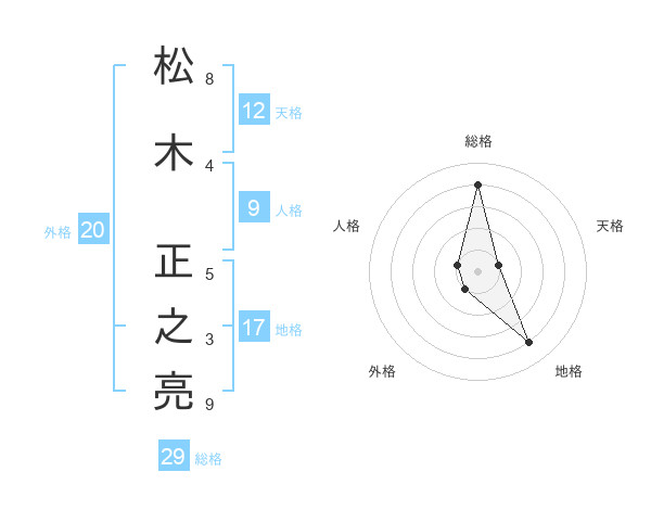 松木 正之亮さんの総格は29画の4点!