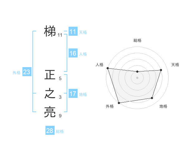 梯 正之亮さんの外格は23画の5点!