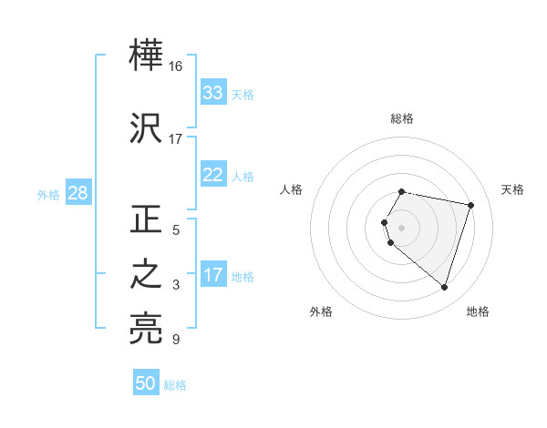 樺沢 正之亮さんを姓名の画数から五運を鑑定