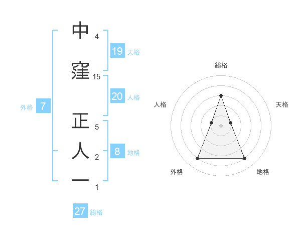 中窪 正人一さんの総格は27画の3点!