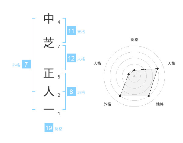 中芝 正人一さんを姓名の画数から五運を鑑定