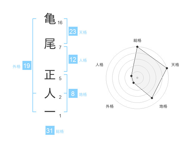 亀尾 正人一さんを姓名の画数から五運を鑑定
