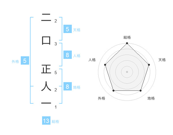 二口 正人一さんの総格は13画の5点!