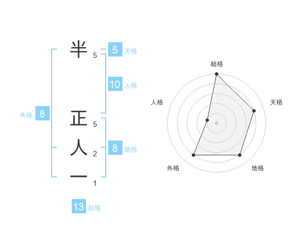 半 正人一さんの総格は13画の5点!